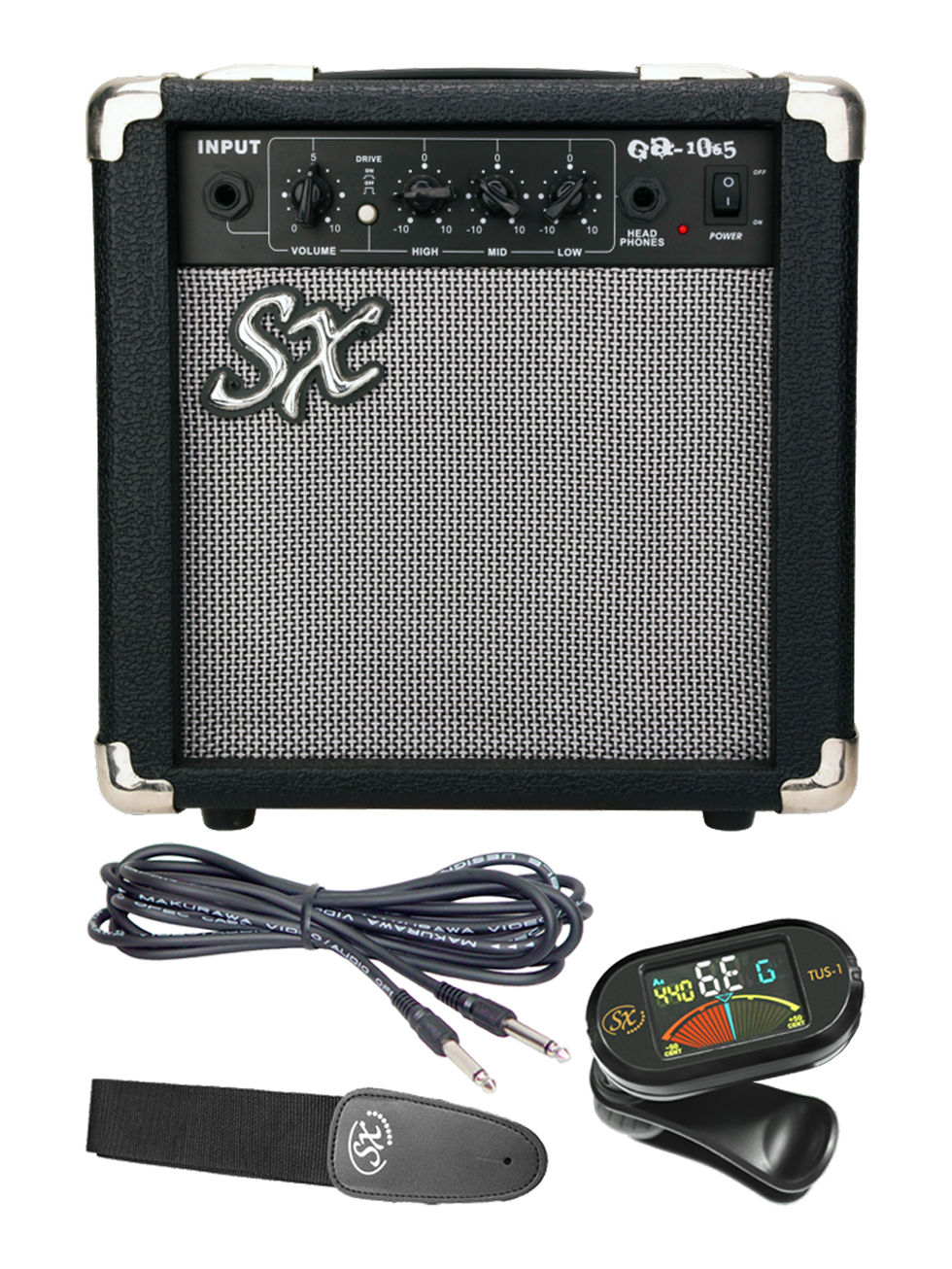 - Accessories: GA1065 10 Watt Guitar Amp, SX Clip-on Tuner, Gig Bag, Strap, 6pcs of Picks, 10' Guitar Cable